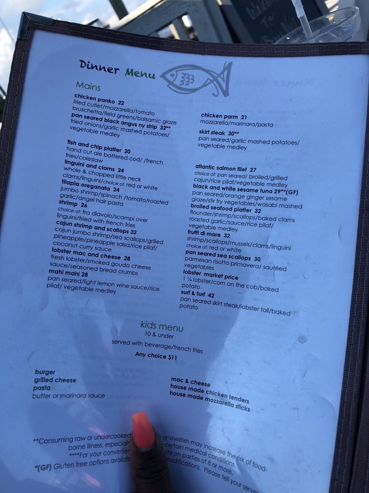 Introducing Bayvue, a New American - Seafood restaurant located at 854 S Wellwood Ave Lindenhurst, NY. Bayvue offers a variety of starters like Mozzarella Sticks, Chopped Baked Clams, and Jumbo Crab Cakes. The raw bar includes delicacies like Little Neck Clams and Shrimp Cocktail. Indulge in soups and salads such as Crab Bisque, Bayvue Salad, and Asian Mandarin Tuna Salad. Customers have raved about the great waterfront views, extensive menu, and efficient service. Enjoy delicious cocktails like Rocket Fuel and Blueberry Vodka Lemonade at the rooftop bar overlooking the water. Dive into a culinary experience with excellent service, good food, and picturesque views at Bayvue. Make sure to try their mozzarella sticks and delightful cocktails for a memorable dining experience.